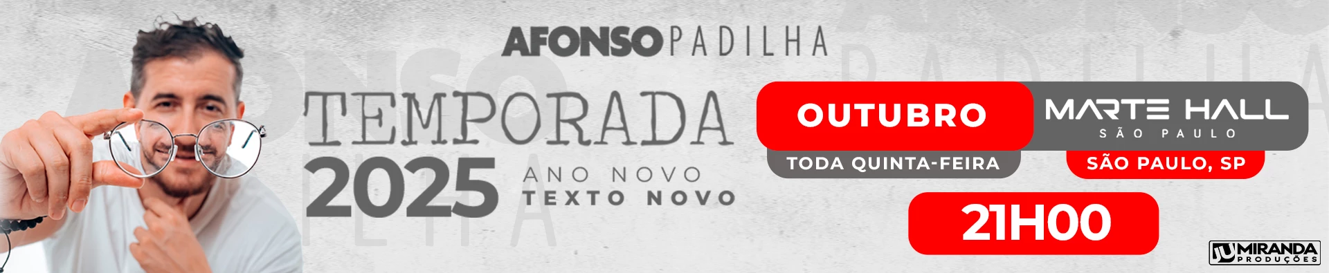 Quartas-feiras, às 20h30 - Nos dias: 08/10/25|12/11/2025|26/11/25