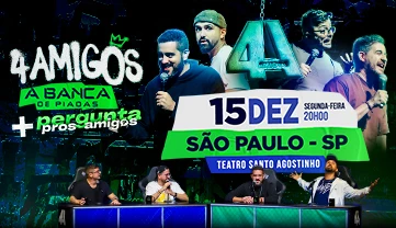 Quarta-feira, 05 e 26 de novembro às 20h |Sexta-feira, 14 novembro às 20h | Segunda-feira,08 de dezembro às 20h |Terça-feira, 16 dezembro às 20h