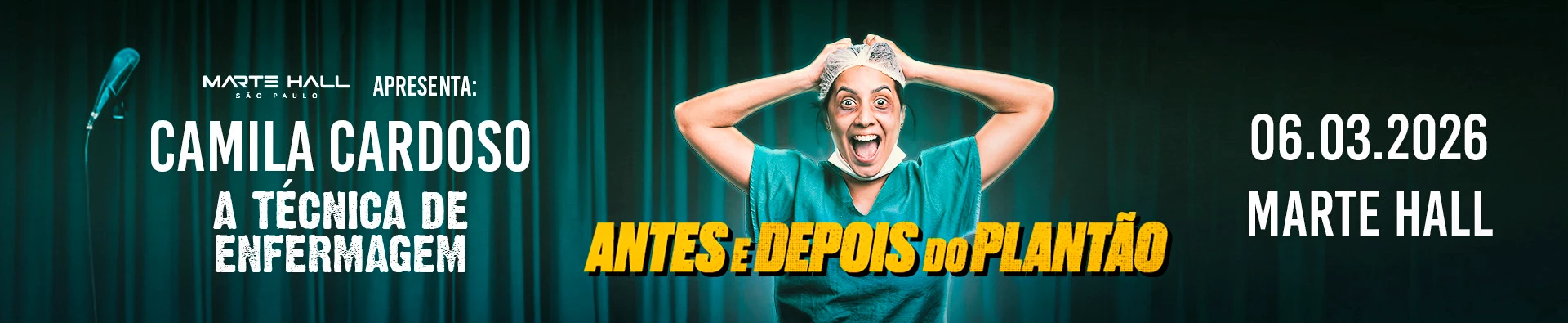 Com um humor afiado, autêntico e cheio de vivência real, Camila leva o público por uma divertida jornada entre o caos dos plantões e as situações absurdas que só quem trabalha em hospital vai entender. Mas mesmo quem nunca pisou num corredor de emergência vai se identificar!