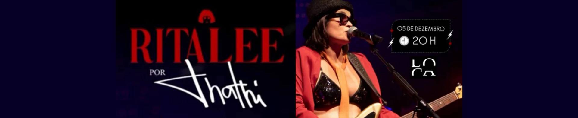 Cantora, compositora, guitarrista e multi-instrumentista do MPB/Pop-rock baiano, Thathi apresenta um espetáculo que revisita com personalidade a obra de Rita Lee, unindo emoção e sucessos que atravessam gerações. Uma celebração ao legado da rainha do rock brasileiro.“Rita Lee por Thathi” é um convite para revisitar a trajetória de uma artista que transformou a música brasileira ao misturar rock, pop, psicodelia, bossa nova e eletrônica. No palco, Thathi imprime sua assinatura vocal e instrumental em arranjos que realçam a força melódica e a irreverência poética de Rita.