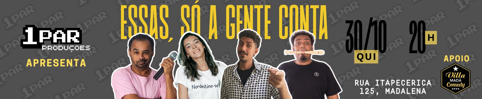 Após 7 meses de jejum da comédia, o Vila Madá Comedy dá as boas vindas ao 1PAR Produções com sua noite de estreia: Essas, Só A Gente Conta. No palco sobem Rodrigo Vambasten, Thalyta Almeida, Luciano Rundrox e Rodolfo de Paula, que prometem fazer sua noite de quinta-feira bem mais divertida.