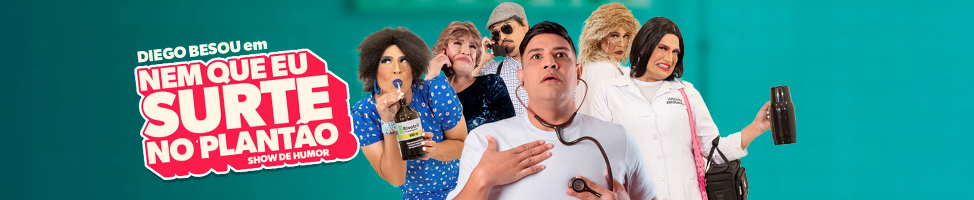 Show de Comédia “Nem que eu surte no plantão” com Diego Besou O maior show de humor da área da saúde está de cara nova! “Nem que eu surte no plantão”, o novo espetáculo do enfermeiro e humorista Diego Besou, promete transformar os dilemas da vida moderna, especialmente os vividos nos bastidores dos plantões em uma comédia hilária e cheia de identificação.