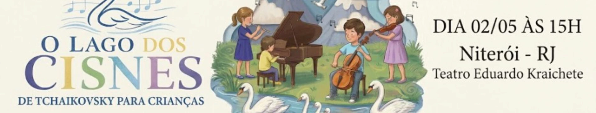 Lago dos Cisnes, deTchaikovsky para Crianças é um concerto de 50 minutos especialmente pensado para apresentar o universo da música clássica ao público infantil de forma sensível e envolvente. Com arranjos desenvolvidos para os ouvidos infantis, a obra de Tchaikovsky ganha uma abordagem acessível, respeitando o tempo de atenção dos pequenos sem perder a beleza e a emoção da música original. O espetáculo propõe um primeiro contato com a música clássica, em uma atmosfera encantadora, criando memórias afetivas e aproximando crianças e famílias desse universo de forma natural, leve e inesquecível. A composição orquestral consiste em piano, flauta, violino e violoncelo. Prepare-se para uma experiência única, sendo este o primeiro passo para um mundo de descobertas e sentimentos profundos da obra de Tchaikovsky...