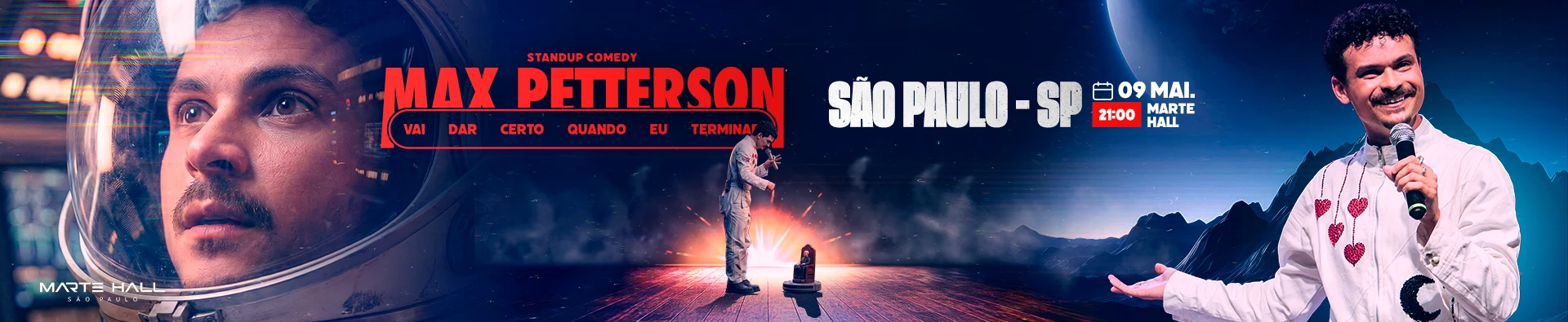 Depois de arrastar plateias com a turnê Bôcu Bonjour, Max Petterson volta aos palcos com um novo espetáculo híbrido, cômico e completamente imprevisível. Em "Vai dar certo... quando eu terminar", o artista mistura stand-up, improviso, memórias da infância no Cariri, bastidores da fama, caos criativo, experiências internacionais e tudo mais que couber (ou não) no palco.