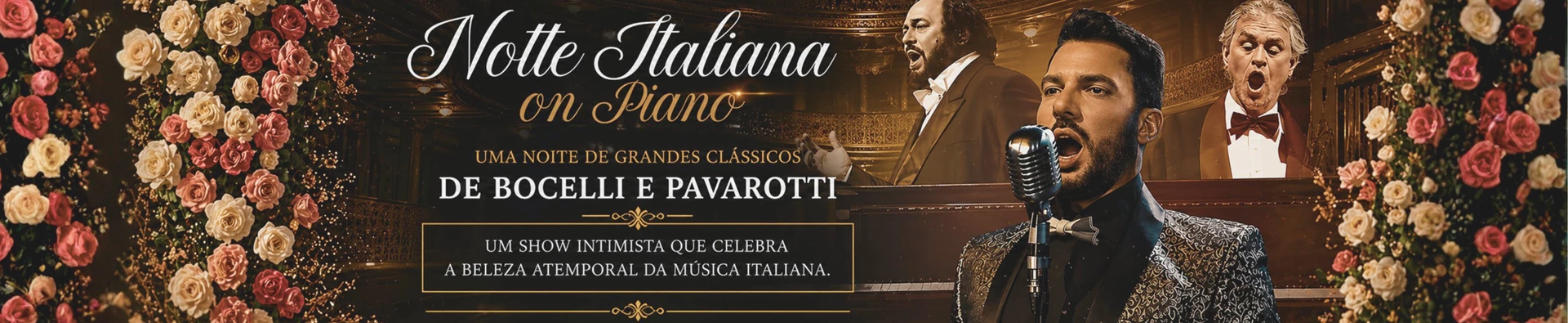Conheça NOTTE ITALIANA, uma viagem a Itália, mas sem ser de avião, mas uma viagem pela emoção, embarcando em um universo inigualável - inspirado nas vozes inigualáveis de Luciano Pavarotti e Andrea Bocelli, o show conta com interpretações de clássicos como Nessun Dorma, O Sole Mio, Caruso e Con te Partirò, entre outras preciosidades da música lírica italiana.Neste tributo repleto de sensibilidade, destaca-se o virtuoso tenor Paulo Paolillo.