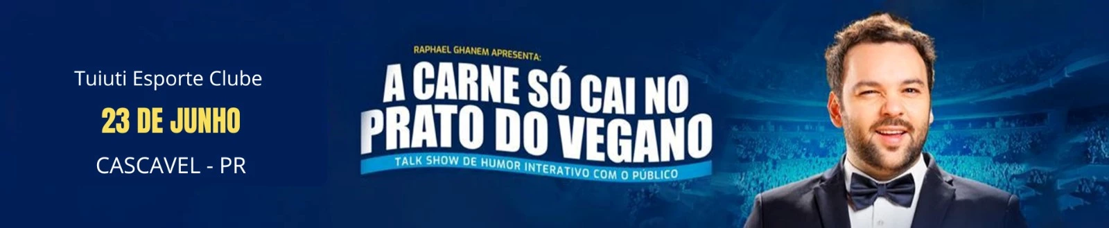 Com texto, interpretação e direção de Raphael Ghanem, " A carne só cai no prato do Vegano" é um espetáculo de Talkshow com a plateia, o público vira protagonista e participa de 90% do show com jogos de entrevista e interações ao vivo.