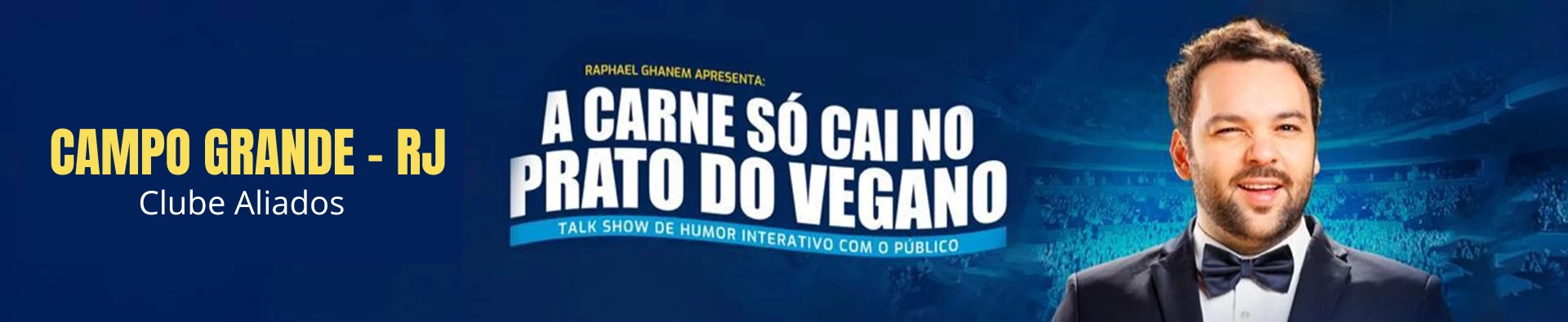Com texto, interpretação e direção de Raphael Ghanem, " A carne só cai no prato do Vegano" é um espetáculo de Talkshow com a plateia, o público vira protagonista e participa de 90% do show com jogos de entrevista e interações ao vivo.