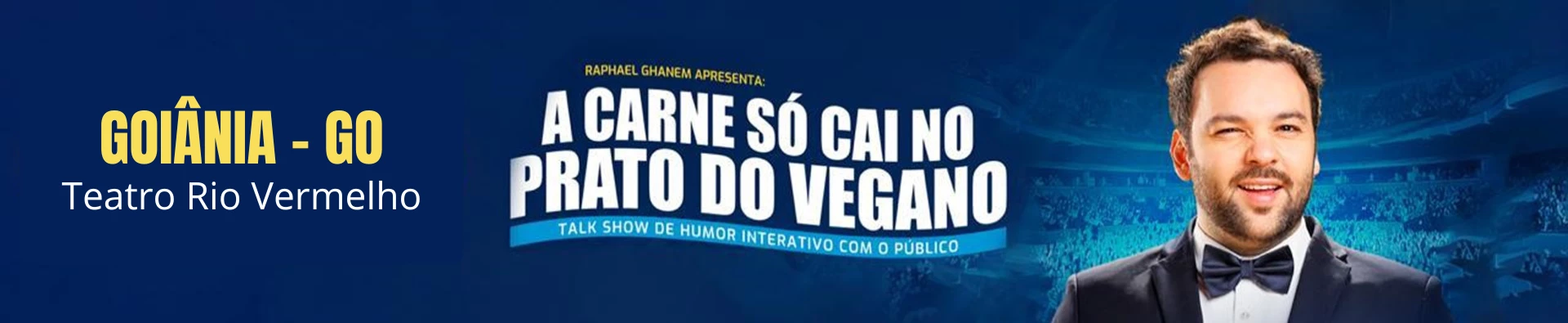 Com texto, interpretação e direção de Raphael Ghanem, " A carne só cai no prato do Vegano" é um espetáculo de Talkshow com a plateia, o público vira protagonista e participa de 90% do show com jogos de entrevista e interações ao vivo.