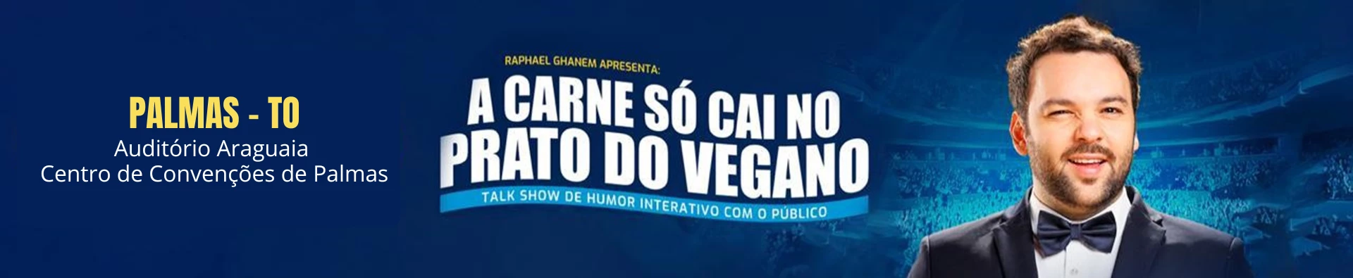 Com texto, interpretação e direção de Raphael Ghanem, " A carne só cai no prato do Vegano" é um espetáculo de Talkshow com a plateia, o público vira protagonista e participa de 90% do show com jogos de entrevista e interações ao vivo.