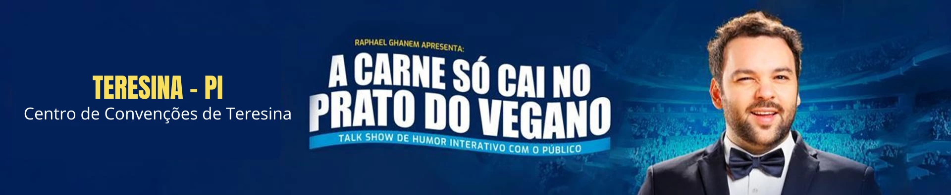 Com texto, interpretação e direção de Raphael Ghanem, " A carne só cai no prato do Vegano" é um espetáculo de Talkshow com a plateia, o público vira protagonista e participa de 90% do show com jogos de entrevista e interações ao vivo.