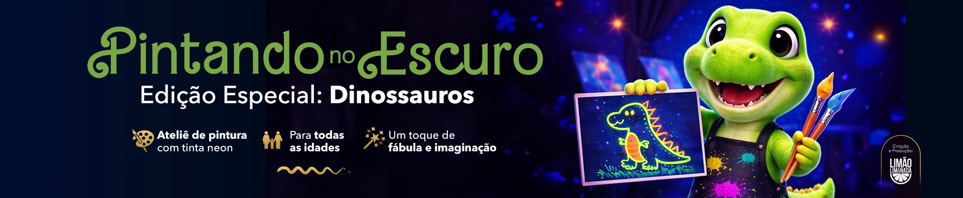 Entre um ambiente imersivo, vista seu avental e solte a criatividade com tintas neon que brilham no escuro. Crianças e adultos poderão criar suas próprias obras de arte e levar para casa um pedacinho dessa experiência inesquecível.